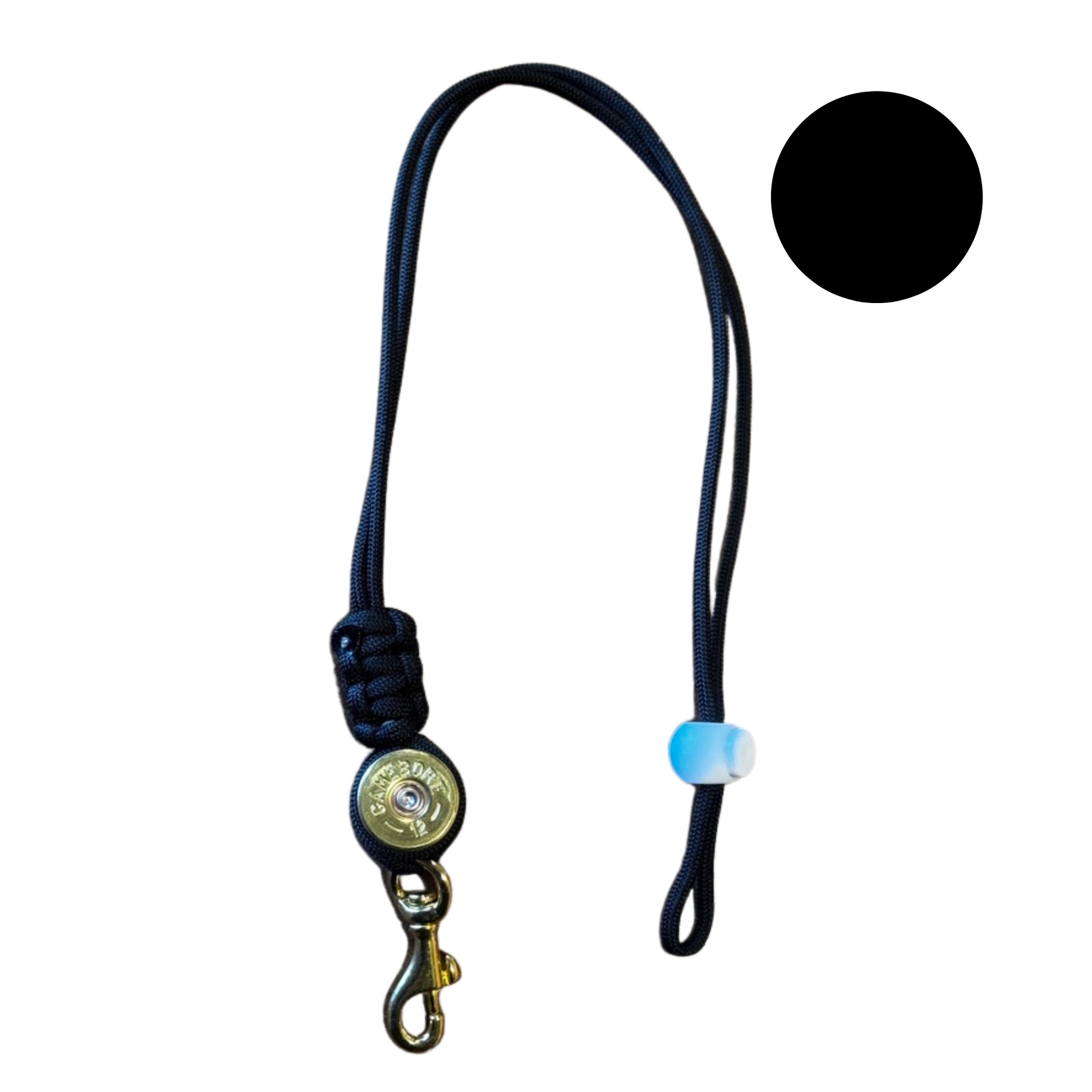 Längden på 48 cm gör bandet perfekt att hänga runt halsen under jakten eller när du tränar hunden. Den lilla men robusta karbinhaken i mässing klarar daglig användning och paracorden tål väder och vind, oavsett om du är ute i regn, snö eller solsken.