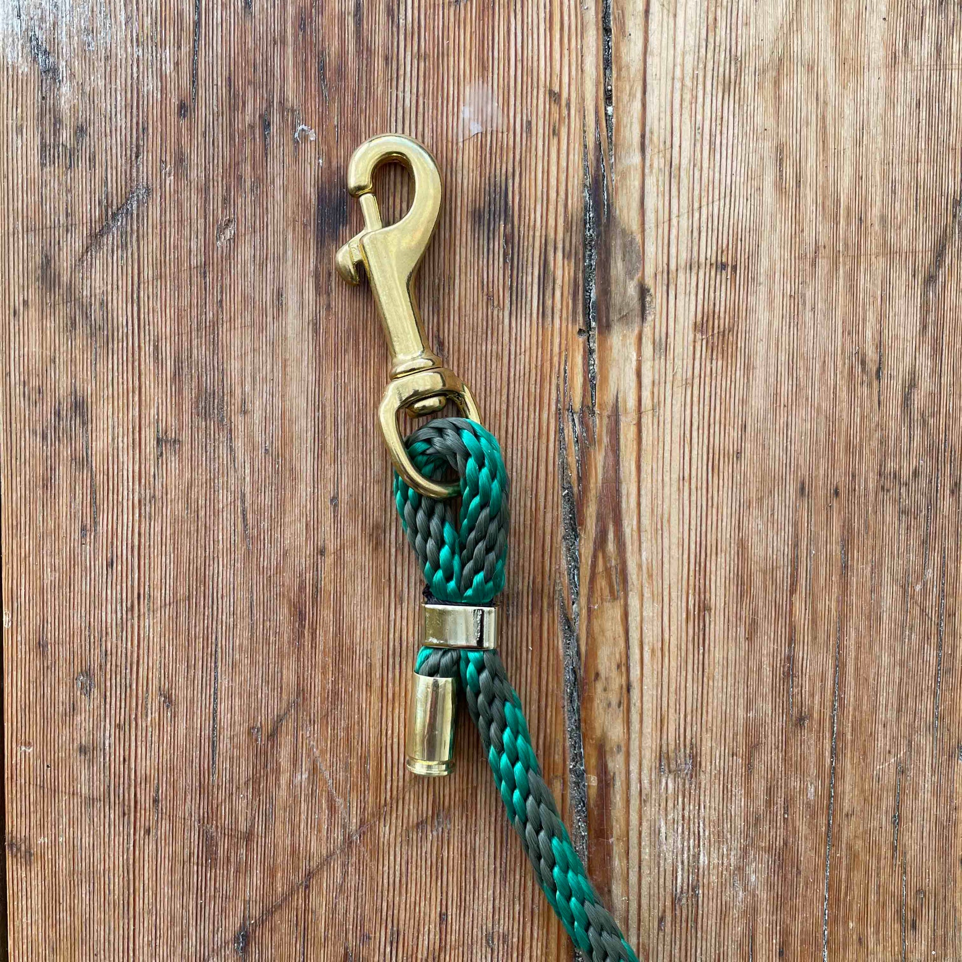 Kopplet är 150 cm, vilket är något kortare än standard och med snygga mässingsdetaljer i återbruksdesign och en kraftig karbinhake i mässing