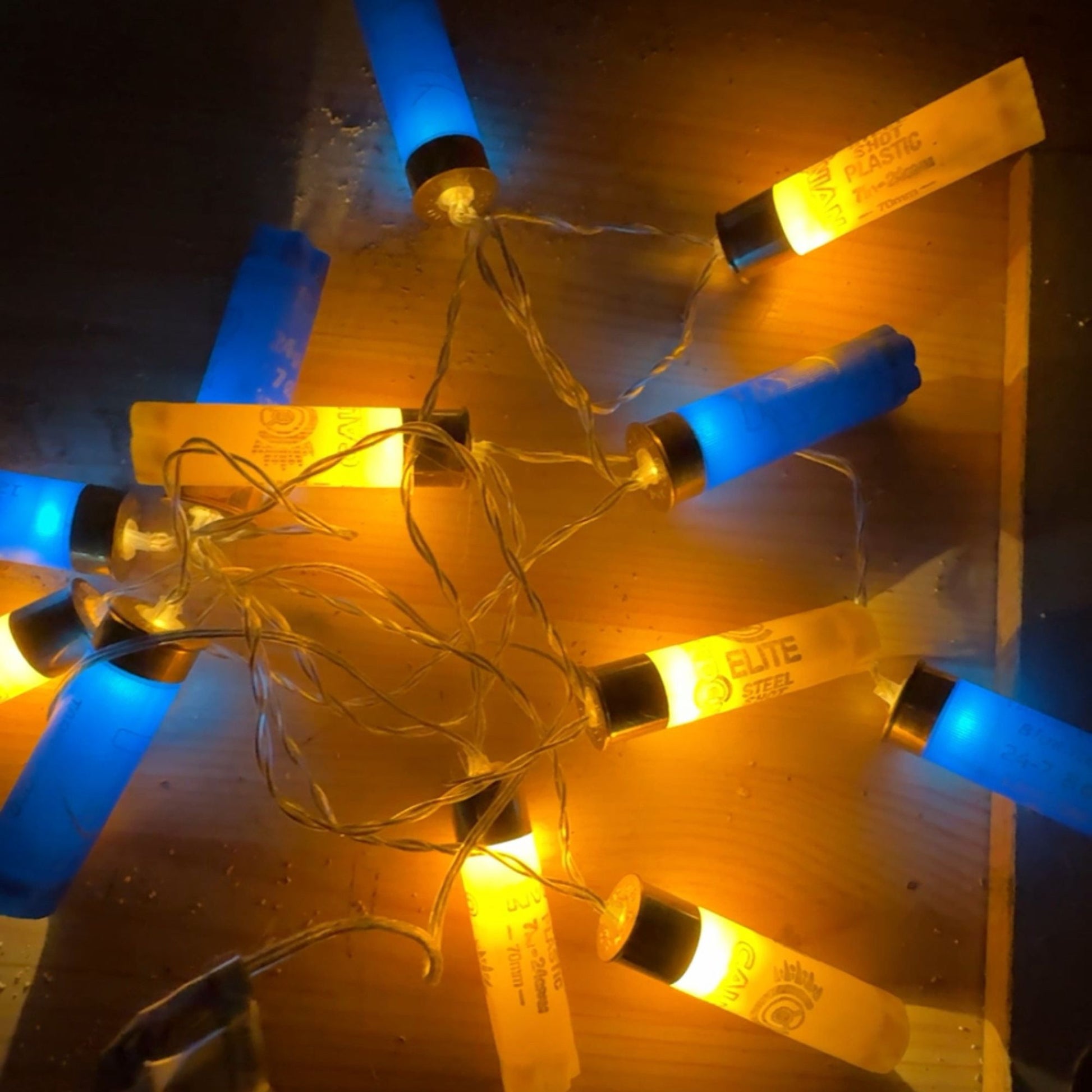 Nu finns det ett begränsat antal av Jaktpresenter´s egna ljusslinga som vi kallar SVERIGE. Den är tillverkad av en batteridriven LED ljusslinga (IKEA LEDFYR) och på varje utan de 12 ledlamporna har vi monterat vackert gula hagelhylsor i kaliber 20 och blåa hylsor i kaliber 12 . En snygg och svensk sommardekoration med jaktkänsla som passar i varje jägares hem.