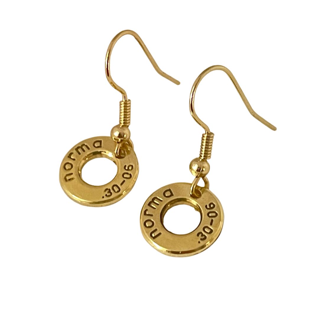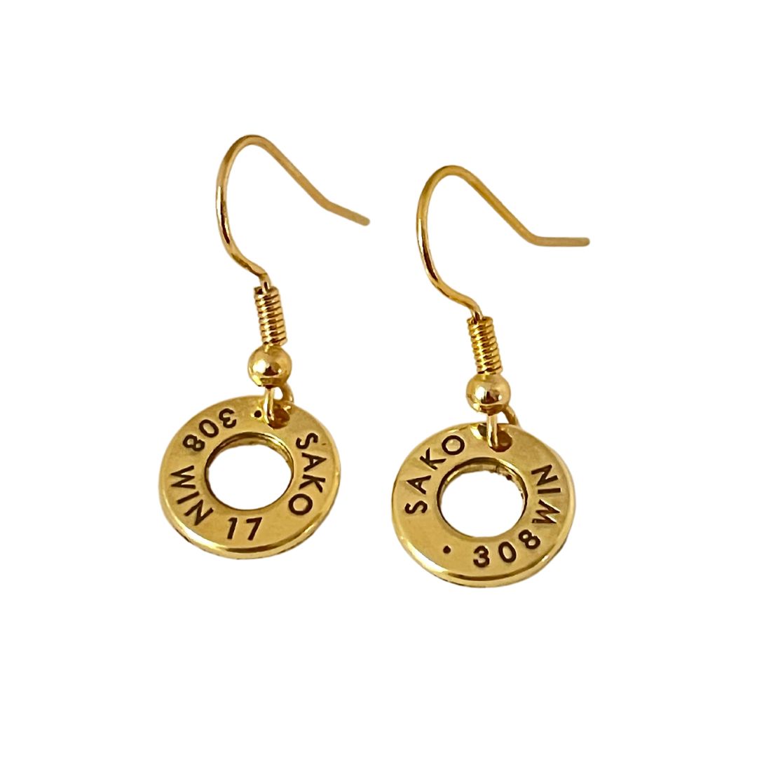 Snygga hängande örhängen med fransk öronkrok och som vi tillverkar av återbrukade hylsor i olika kalibrar.