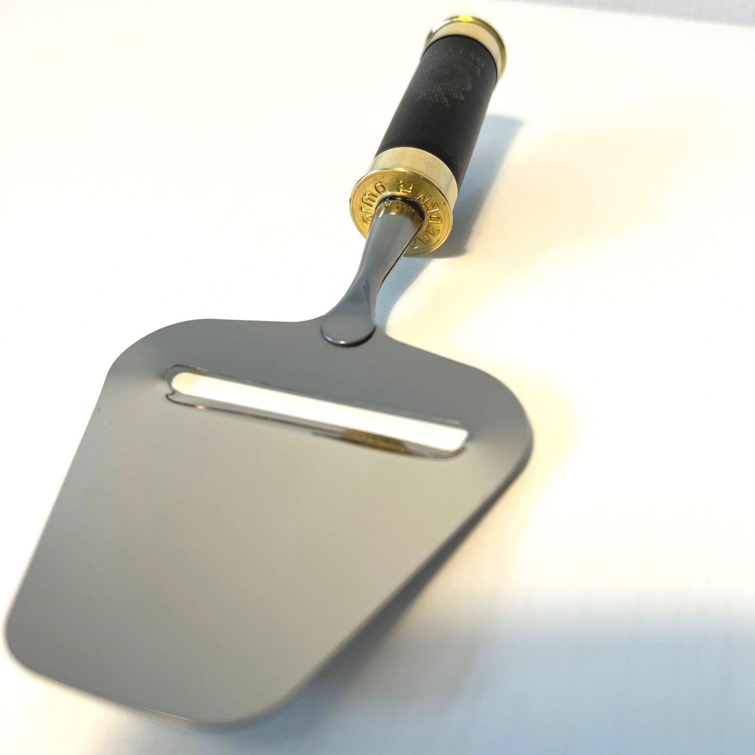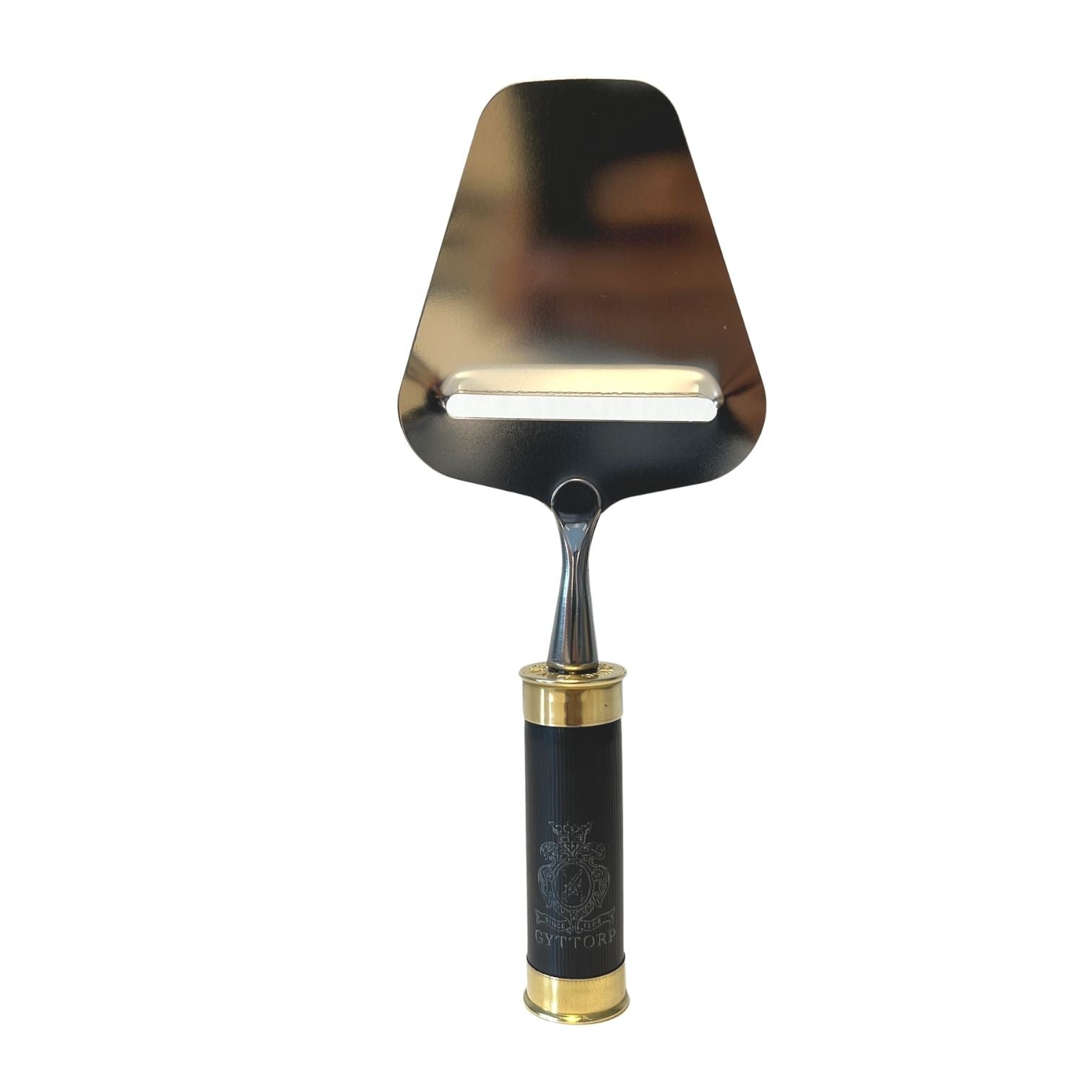 En snygg. unik och osthyvel i återbruksdesign i vår Röstorp Serie med ett osthyvelblad i rostfritt stål och ett handtag tillverkat av återbrukade hagelhylsor.