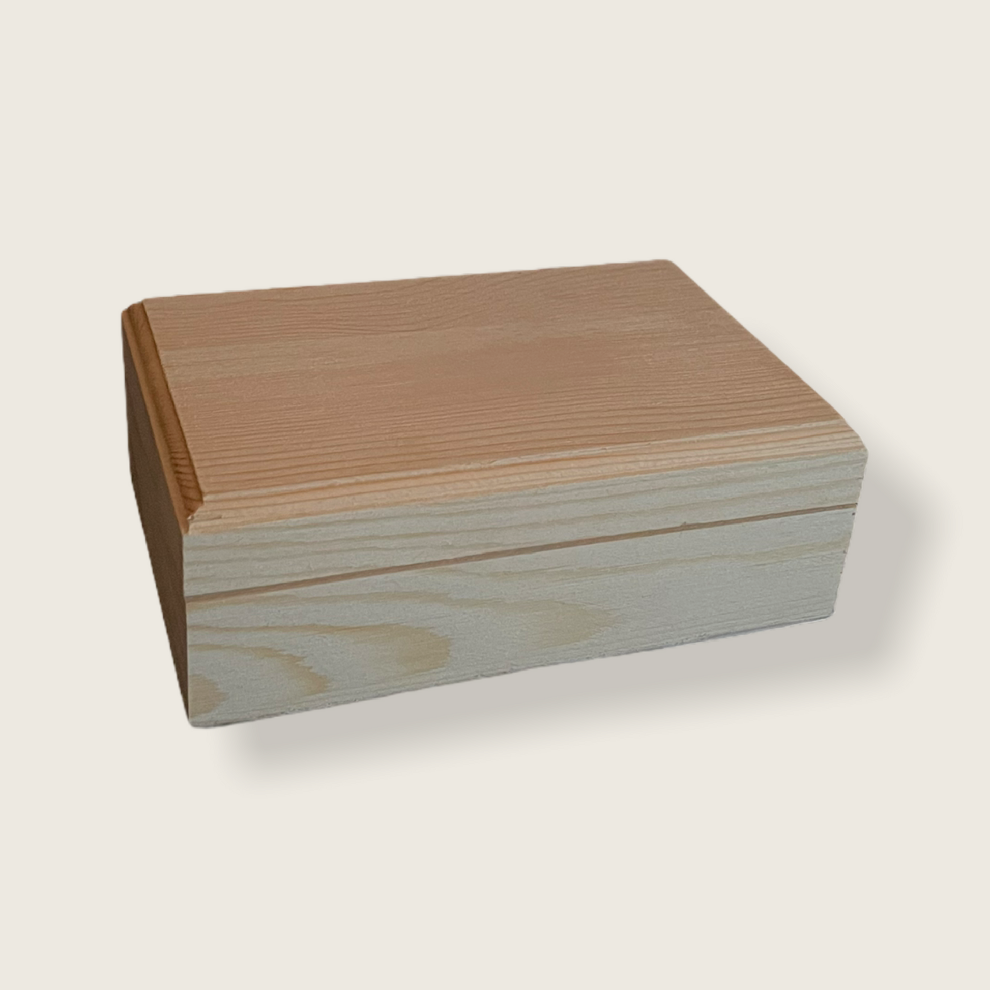 Asken har ett magnetlås och kanterna är vackert profilerade och kan återanvändas som smyckesask m.m.